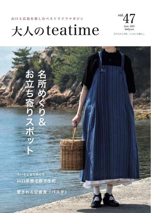 今年も夏がやってきました。今回の巻頭は、島ならではのゆる〜い時間を満喫する特集です。山口からは「周防大島」、広島からは「江田島」をピックアップ。お出かけの参考にしてくださいね。なごみの古民家カフェ特集では、気になっていた新店もいろいろ調査してきました。個人的に好きなテーマだったので、仕事を忘れて楽しんでしまいました。その他、人気店の初夏向けパフェも紹介しています。ホッと一息のコーヒータイム、大人のteatimeで楽しいひと時を。 目次 ■THIS SPECIAL SHOP(Magoʼs Cafe/山口) ■人生を共にする家具選び。(マルニ木工/広島) ■空と、海と、ゆるり島じかん ■空と、海と、ゆるり島じかん 山口・周防大島をめぐる ■空と、海と、ゆるり島じかん 広島・江田島をめぐる ■木下耕香園の 季節の寄せ植え ■気ままにカフェ時間(piccoro coffee/山口) ■こころ奪われる パフェの誘惑 ■浜 敬子さんの 暮らしにスパイス ■teatime choice ■MIHOさんの 薬膳知ってSmileレシピ ■つくりびとを訪ねて(木とてと/広島) ■なごみの古民家カフェ