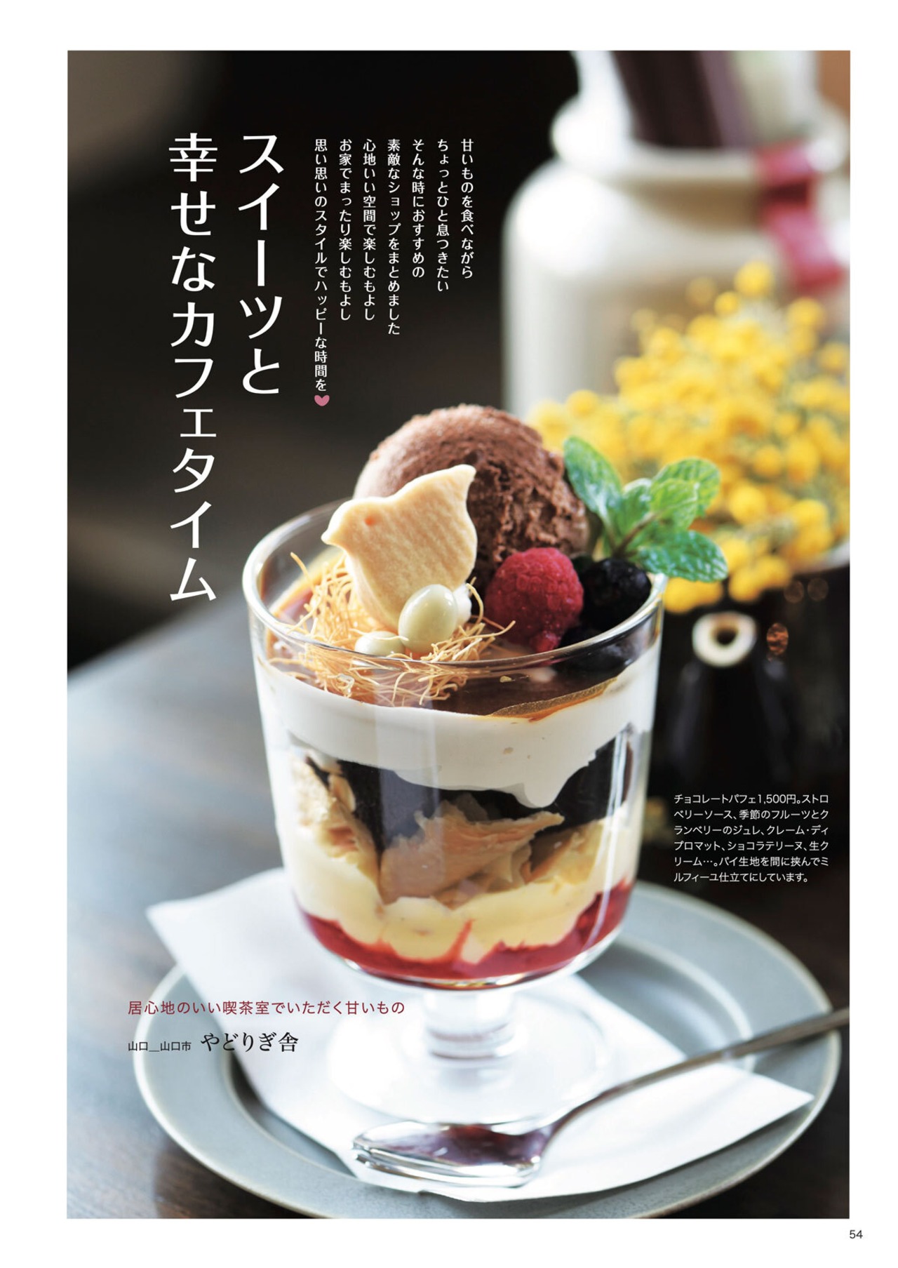 自分らしく毎日を楽しみたい、こだわり派のあなたへお届けする、山口・広島の素敵がいっぱいの「大人のteatime」。春爛漫、お出かけが楽しくなってきましたね。今回はそんな季節にぴったりの「Flower&Green」を巻頭特集にしました。お花や自然の中で楽しめるカフェ、寄せ植えの楽しみ方、母の日や記念日の贈り物に参考にしたいブーケなど、紙面から春をたっぷり感じてみてください。また、今回からシリーズではじまる「定番食」では「海鮮丼」をピックアップ。どれも美味しそうで巡りたくなること間違いなしです。